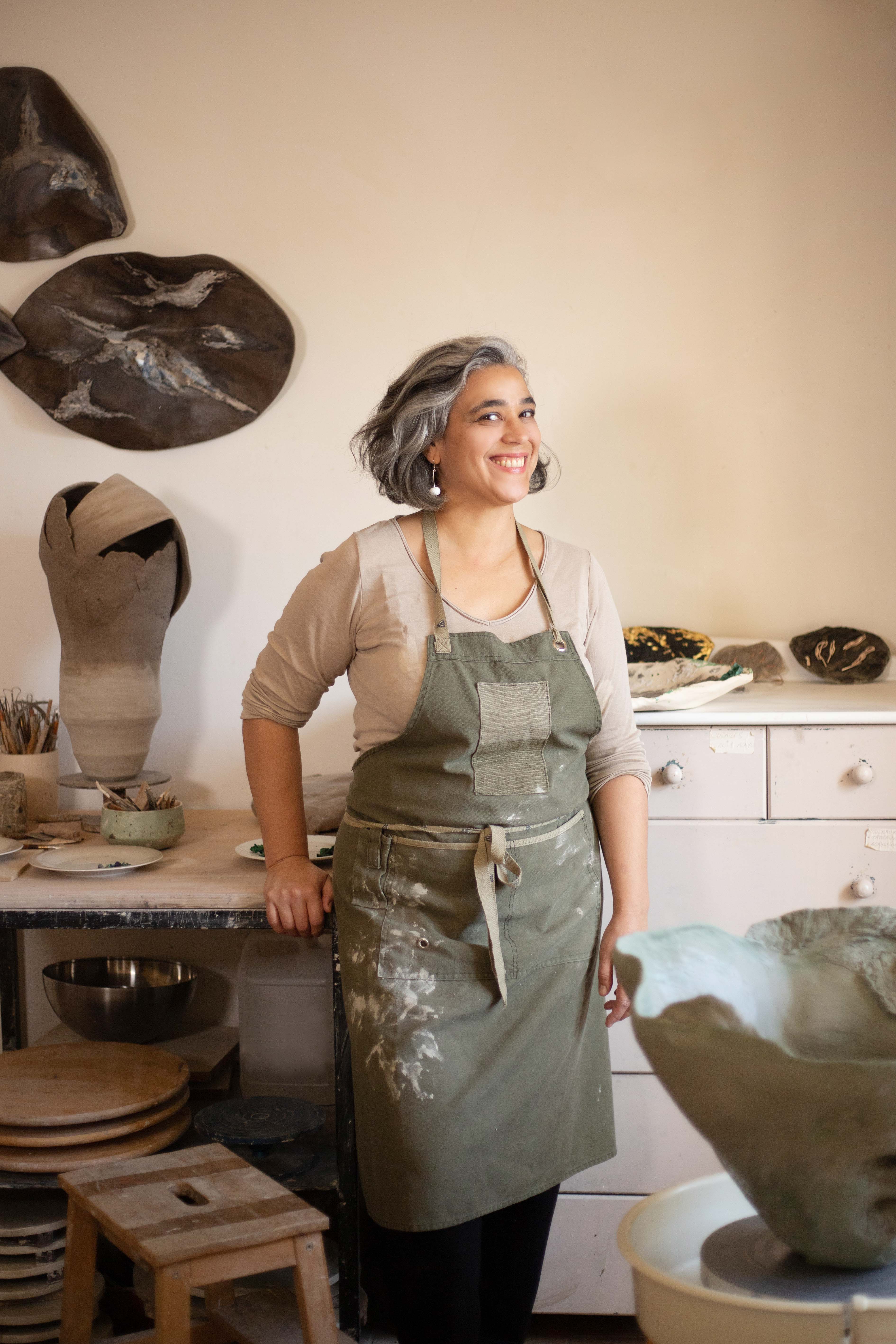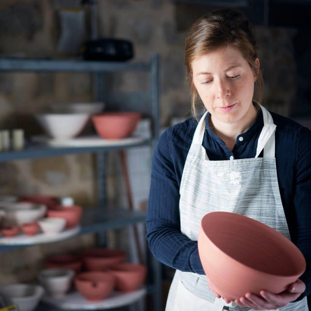 Je crée des céramiques utilitaires et décoratives contemporaines.